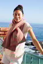 Light and airy, soft and warm describe our cross over scarves. Cotton batting inside. Small zip pocket.