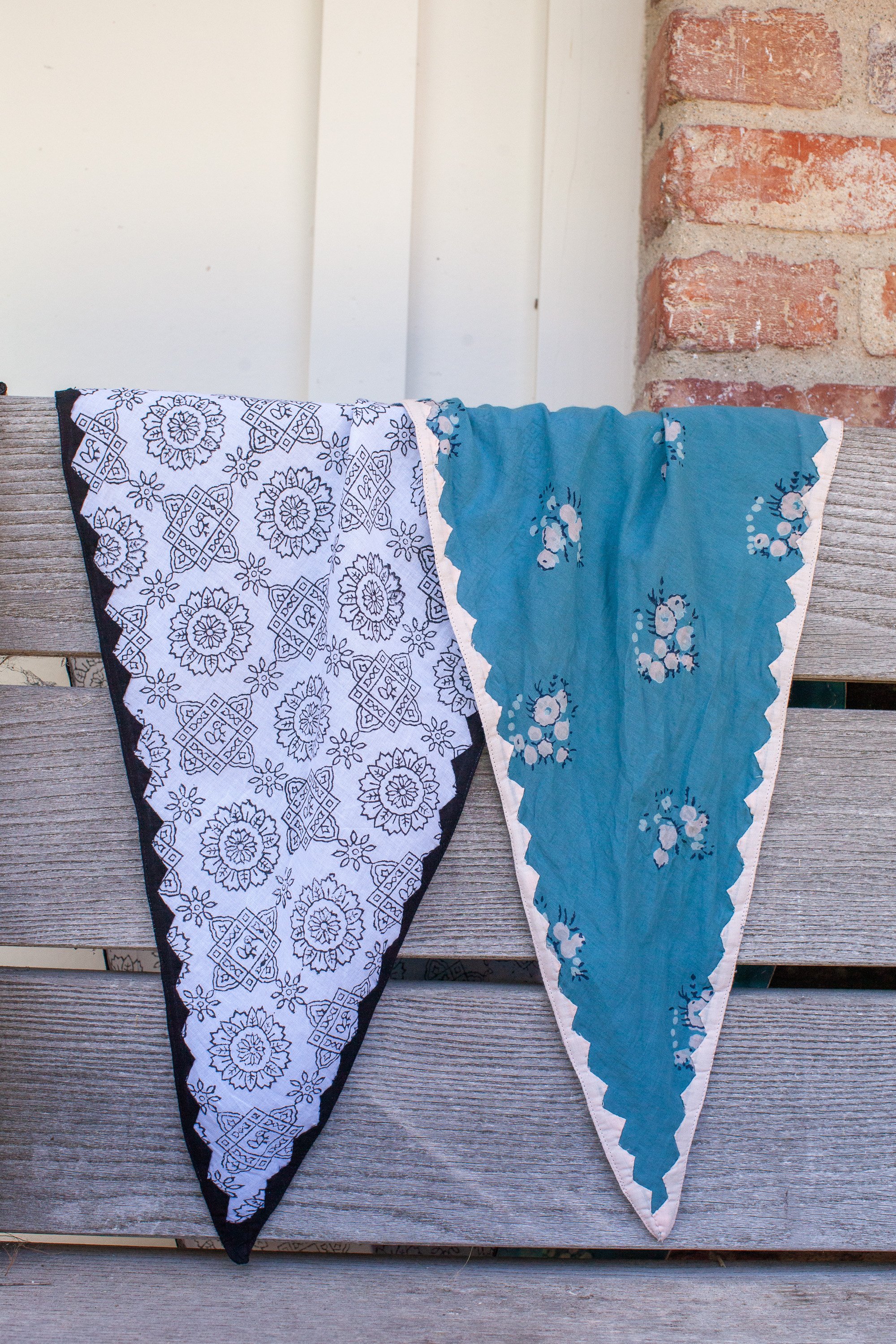 Introducing our stunning diamond-shaped scarf adorned with delicate applique trim. Versatile and elegant, this scarf can be worn in a myriad of ways - whether as a stylish hair accessory, a chic belt to accentuate your waistline, a charming embellishment on a hat, or simply wrapped softly around your neck as a classic scarf.