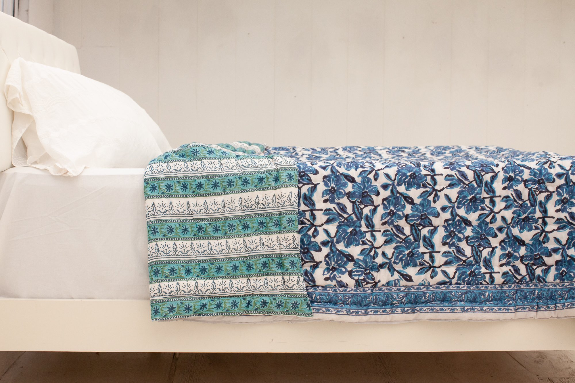 Kerry's quilts include hand-quilted cotton batting, luxe cotton and our softest hem. We love our solids layered in the bed as top sheets. So snuggly soft.