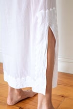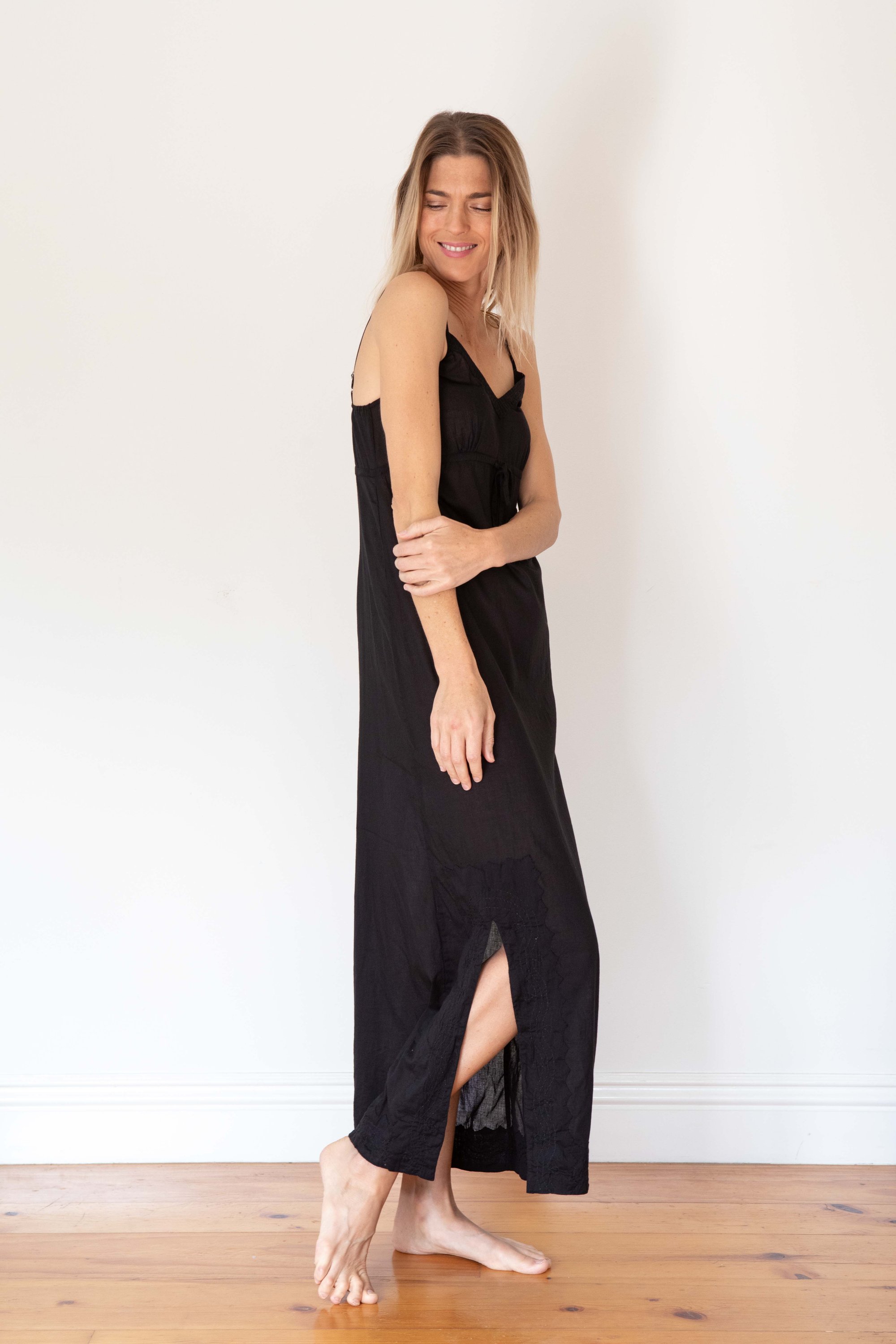Our long basic solid slip dress is great for layering under our Kerry Cassill dresses. Made with Indian Cotton and hand dyed in subtle basic colors with a hand applique hem. Also super soft to sleep in!