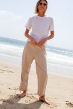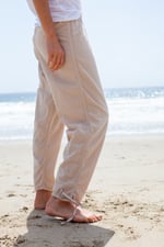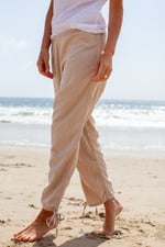 Easy, soft and oh so comfortable Parachute Pant. You will live in this pant. Elastic waist and ties at the ankles.