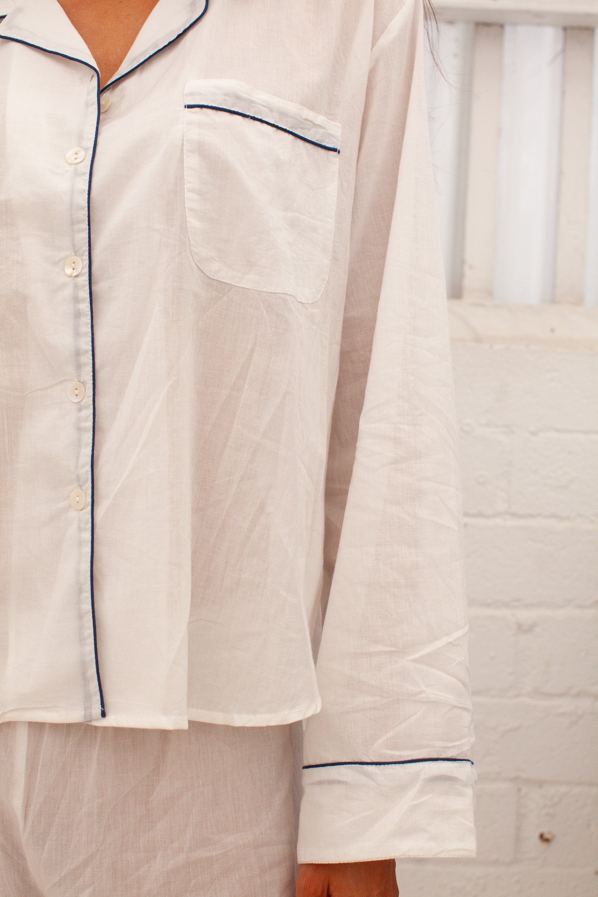 Oversized super soft and comfy for relaxing and sleeping in. Button front closure with piping detail. Chest pocket.