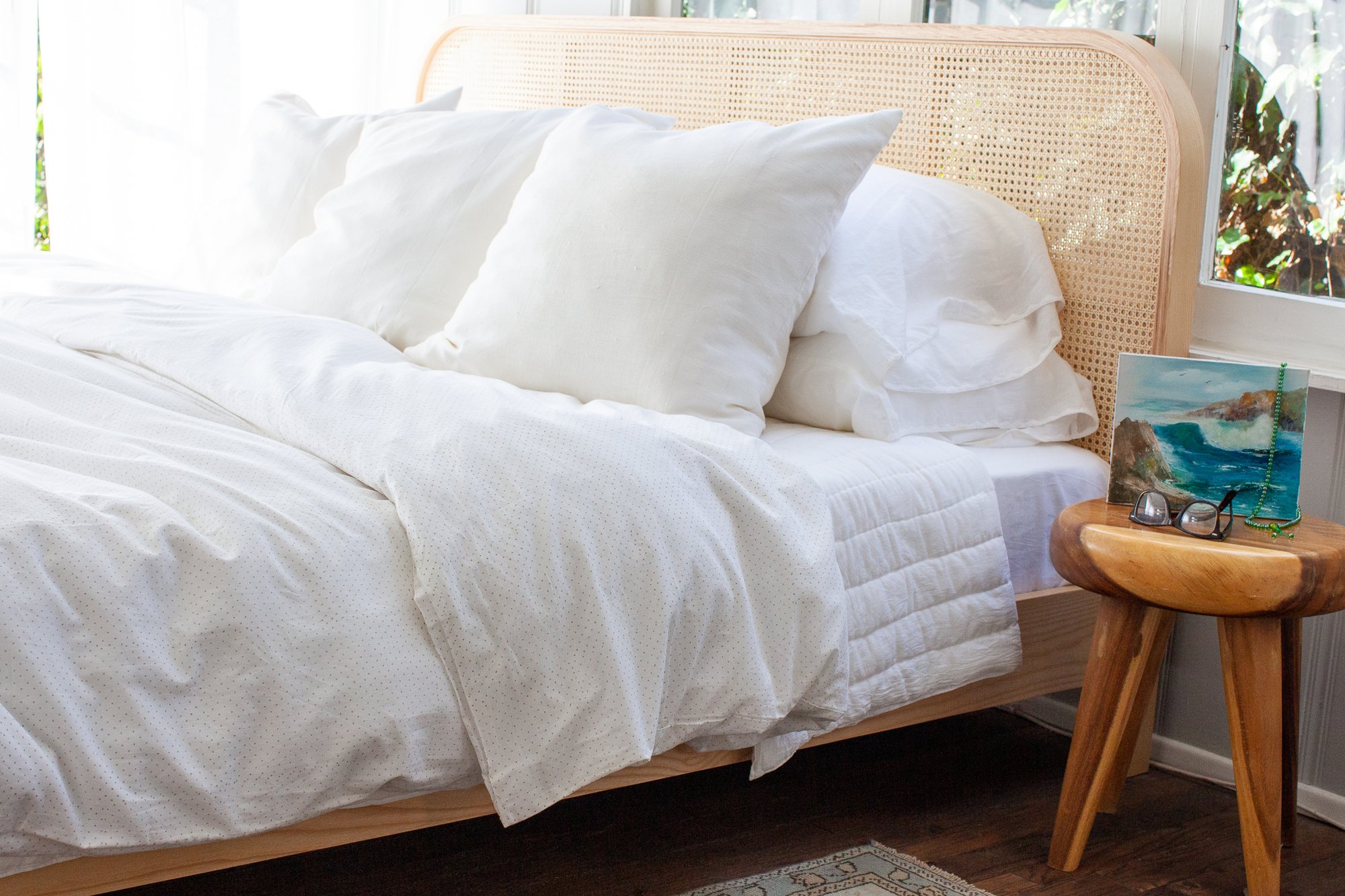 Kerry's quilts include hand-quilted cotton batting, luxe cotton and our softest hem. We love our solids layered in the bed as top sheets. So snuggly soft.