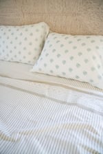 Kerry's fitted sheets are 100% cotton and have adjustable ties to secure the perfect fit. These are available in either King or Queen size.